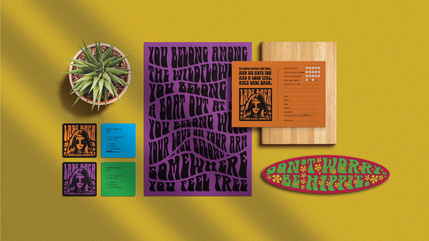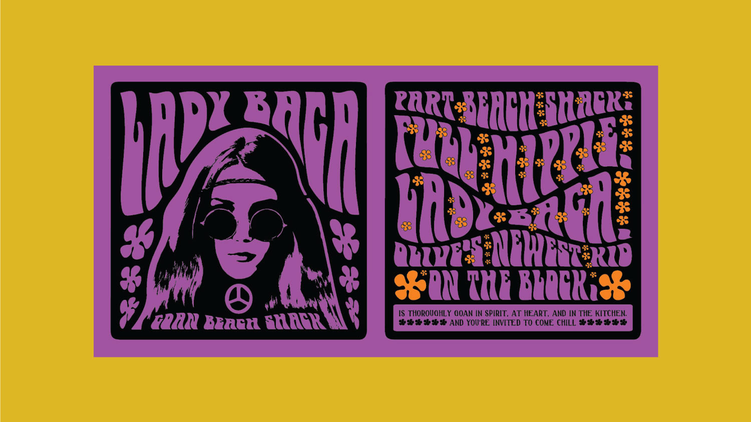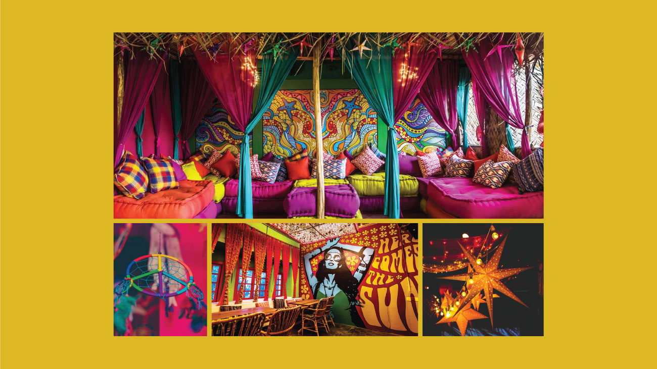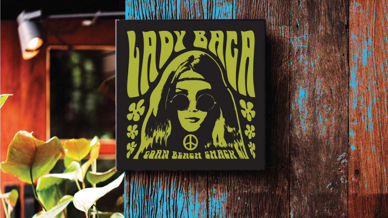 Inspired by the hippies that frequented Goa’s sunny shores, Lady Baga’s identity brings back the easy vibe of the 1970s beach shack.