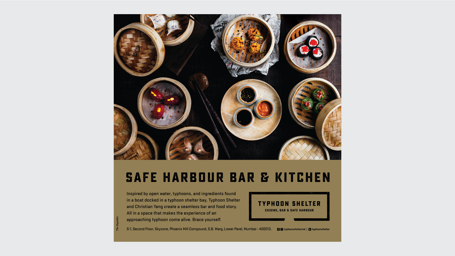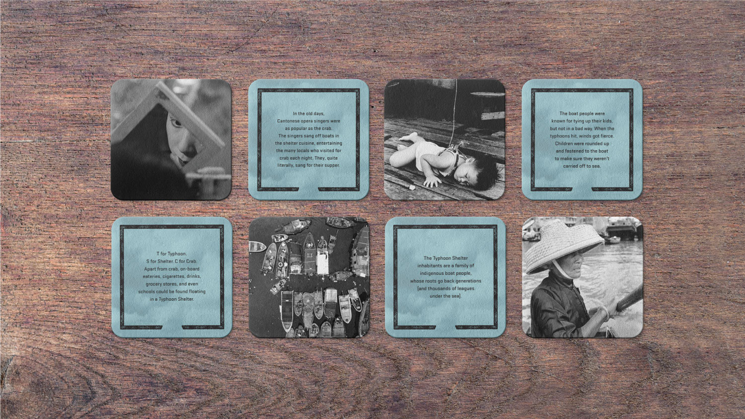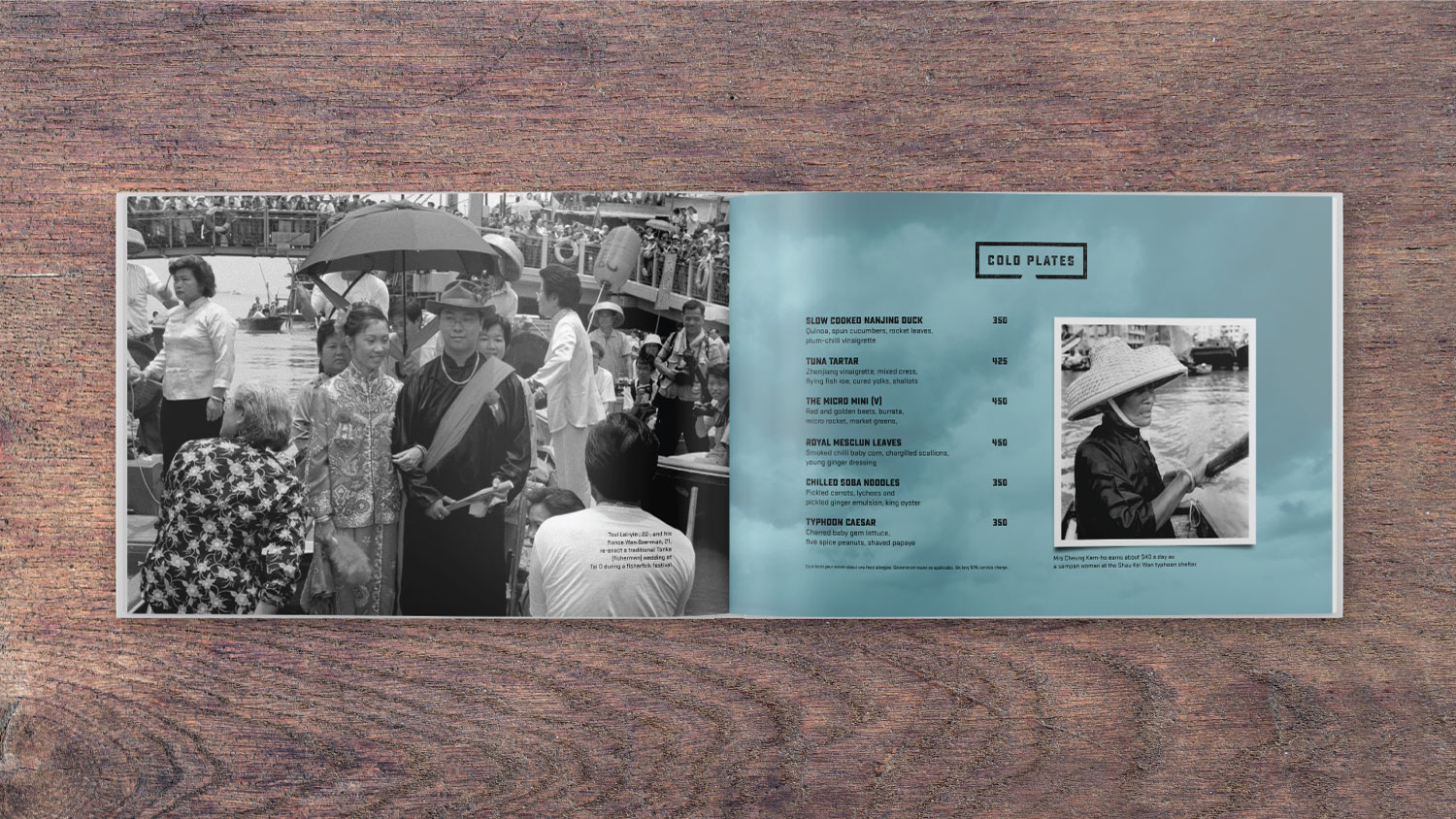 Inspired by life lived on the sea, Typhoon Shelter celebrates the convivial spirit of the ‘typhoon shelter people’. Their culture is a fully developed one; with its own language, cuisine, songs, and superstitions.